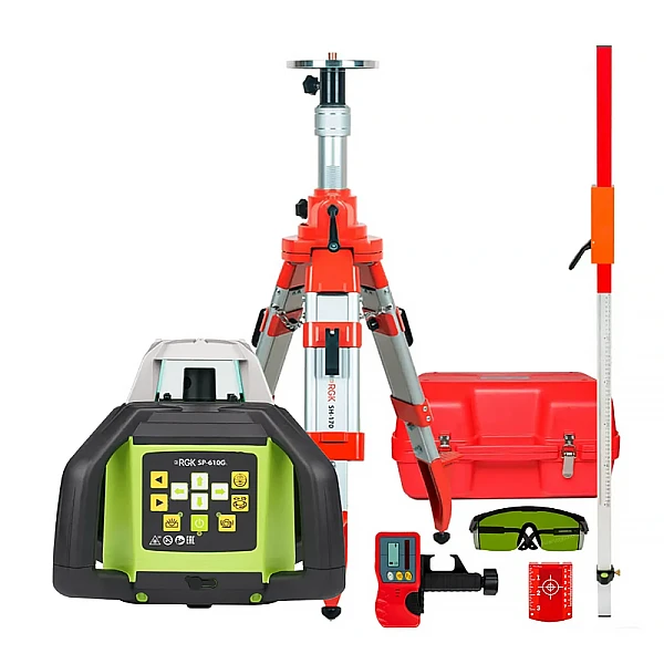 Купить Комплект: ротационный нивелир RGK SP-610G + штатив, рейка в Тольятти легко — просто позвоните по телефону: 8-800-551-11-01