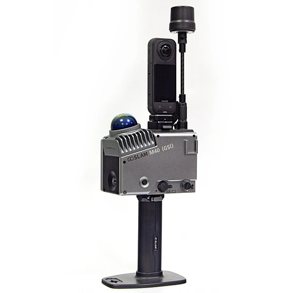 Это специальное крепление, которое надёжно соединяет лазерный сканер GoSLAM M40 (GSI) и камеру Insta360 X5. Оно нужно для автоматического сбора цветных данных вместе с геометрией во время сканирования, включая создание моделей в формате 3D Gaussian Splatting (3DGS).