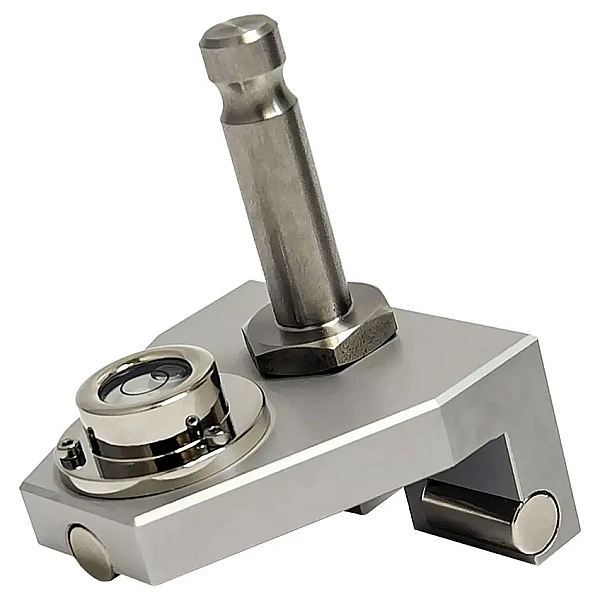 Круглый уровень позволяет горизонтировать крепление, а мощные магниты 103-GW-L надежно удерживают его в выбранном положении. Вырез в вертикальной части крепления 103-GW-L позволяет, при необходимости, наносить метки на рельс.