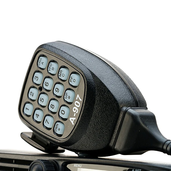 DTMF-клавиатура на тангенте позволяет не только вводить информацию, но и программировать радиостанцию без подключения к компьютеру. Для удобства пользователя на тангенте продублированы клавиши передней панели радиостанции.