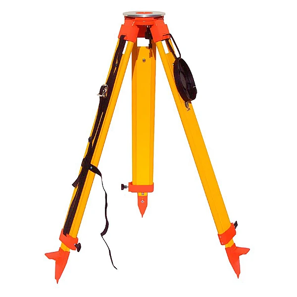 Телескопические ножки фиксируются при помощи комбинированной системы из винтового механизма и клипсы. Это - оптимальное решение, в котором сочетаются высокая скорость работы и надежность. Заостренные наконечники стоек и прочные упоры позволяют крепко установить геодезический штатив в рыхлый грунт.