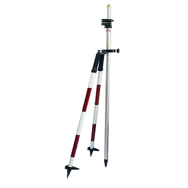 Телескопическая веха для установки призменных отражателей и внешних антенн GPS-приемников на высоте до 2,5 м с фиксацией высоты поворотным винтом в комплекте с универсальным биподом (двуногой) - алюминиевым штативом с двумя телескопическими опорными стойками, регулируемыми по высоте, и зажимным кронштейном.